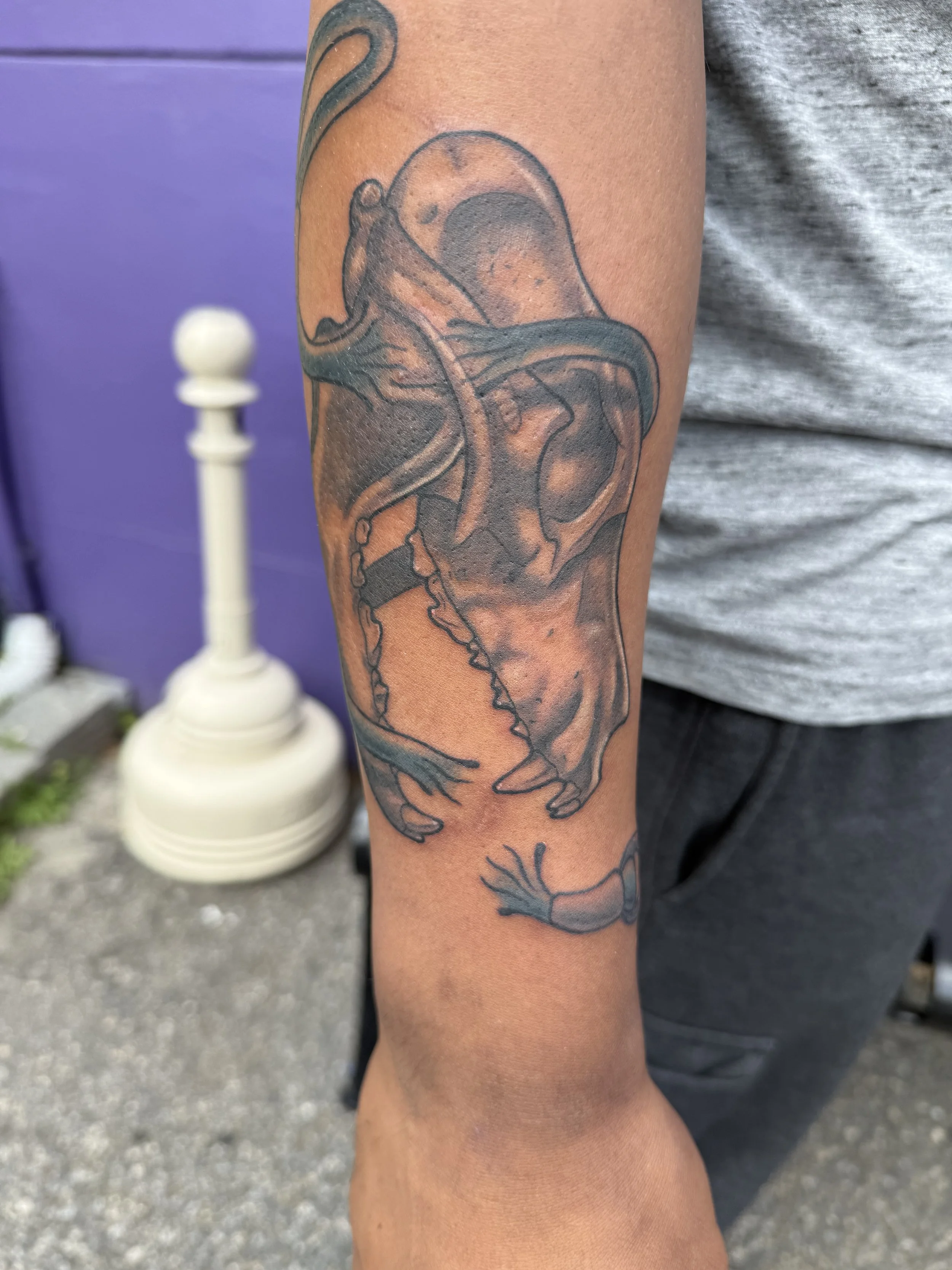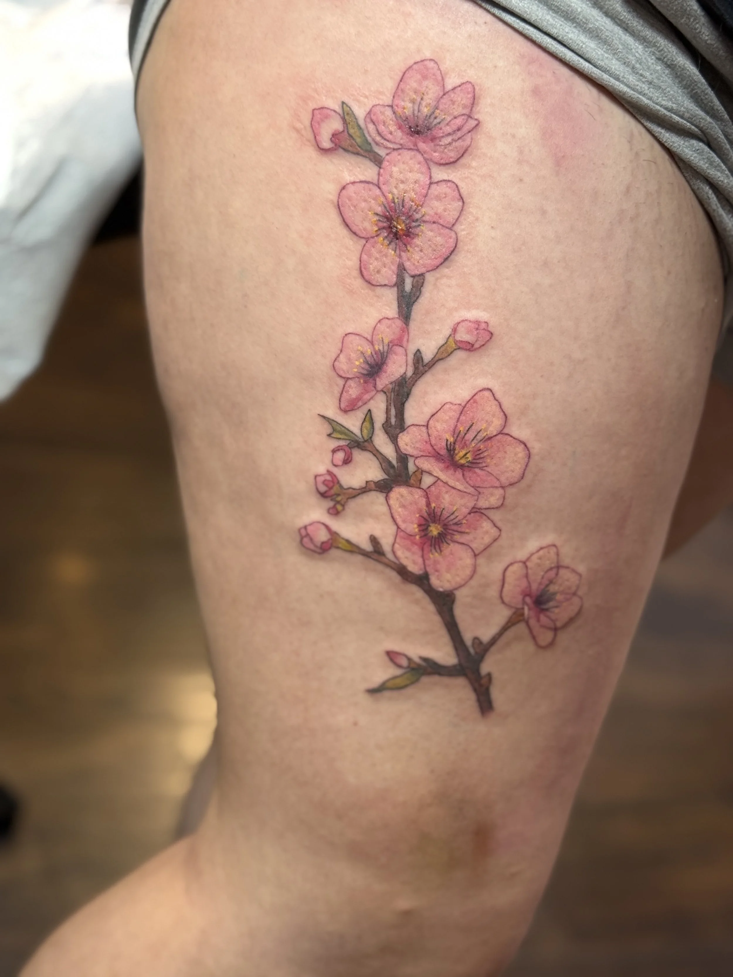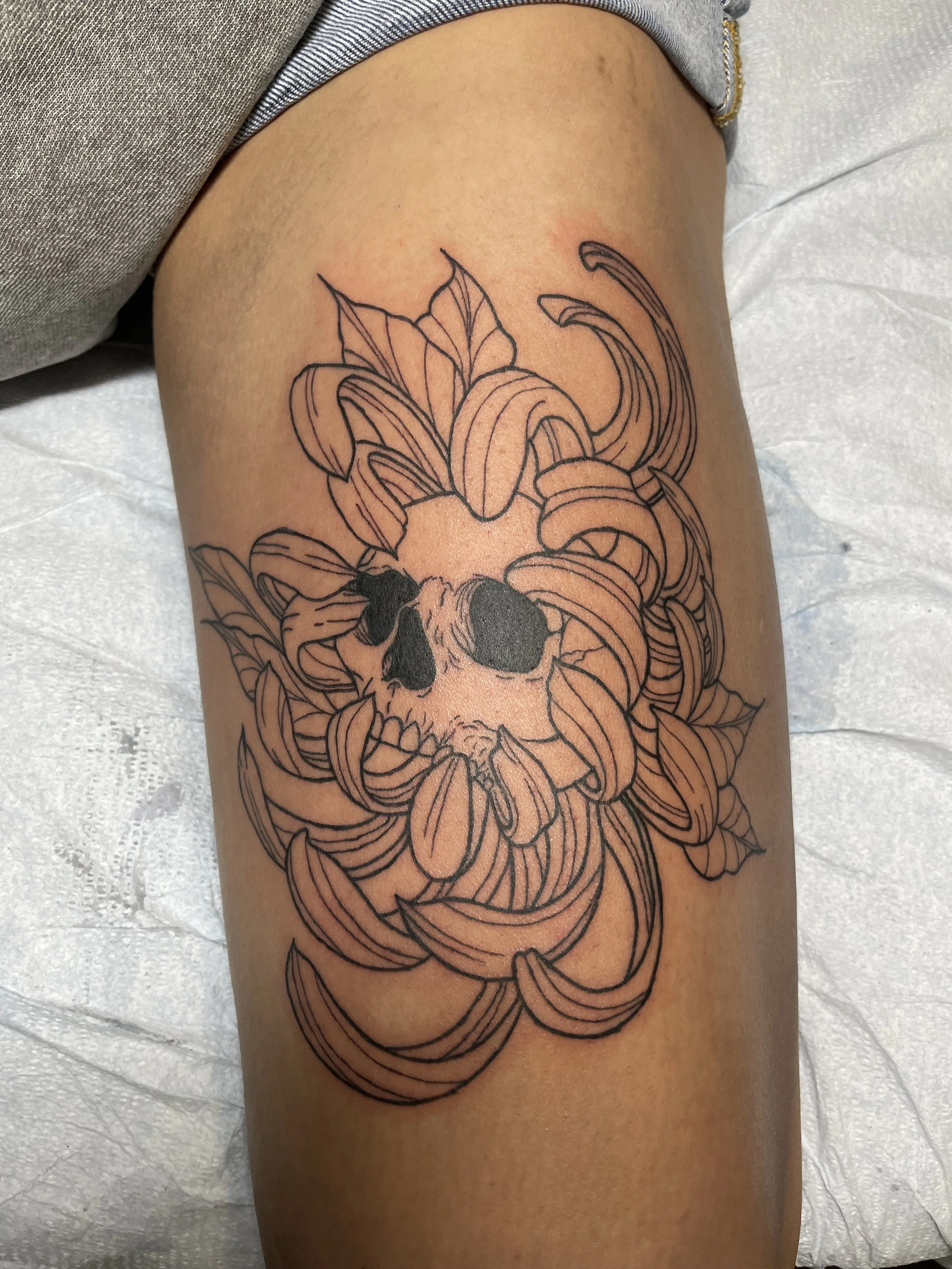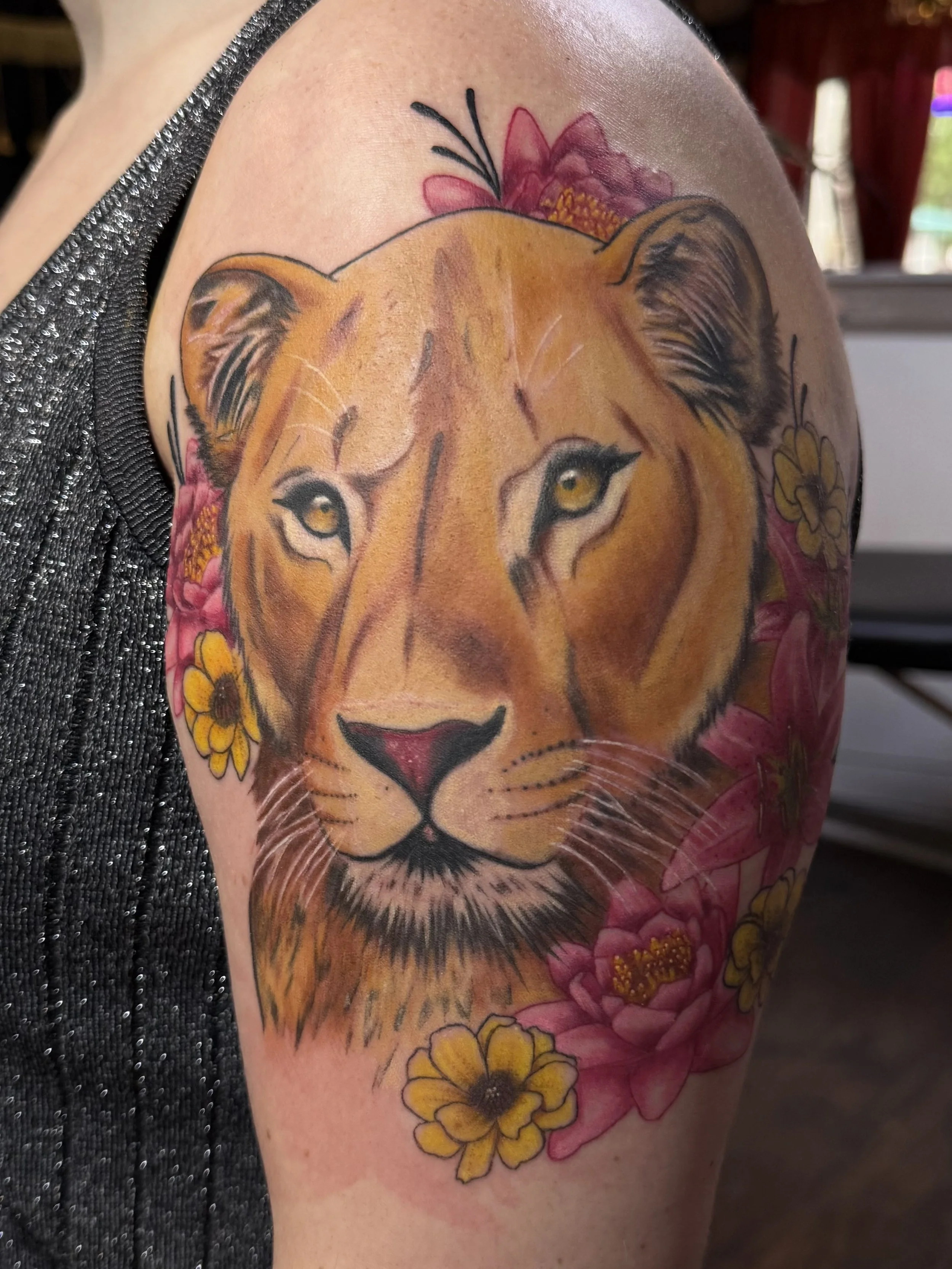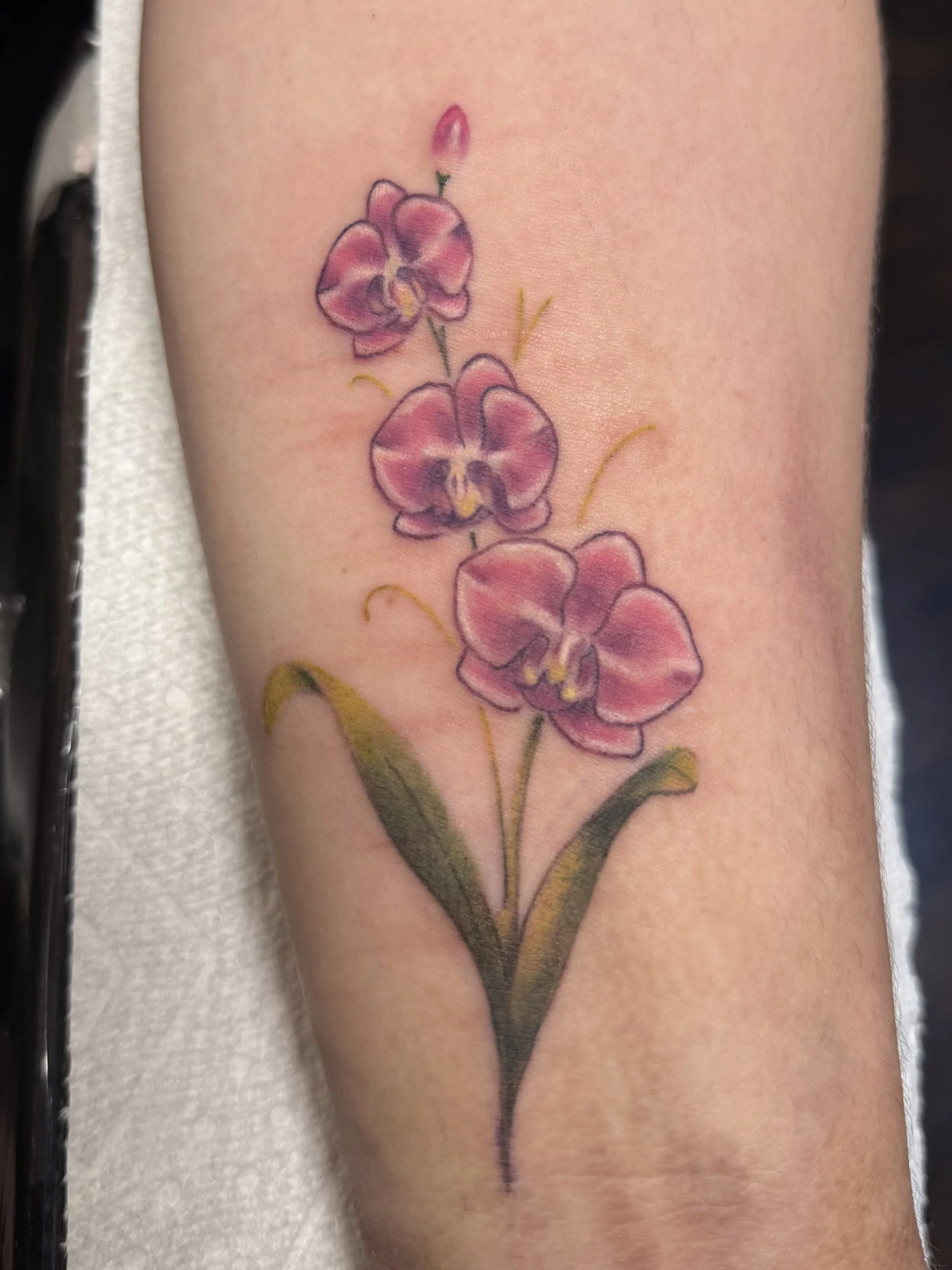 She enjoys tattooing in both black & grey and color, and working in different styles ranging from American traditional to full-color florals.